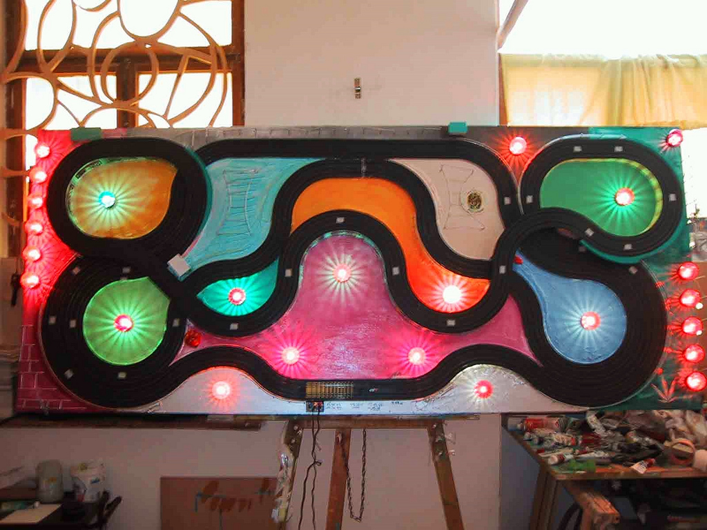 Analog Electronic Racetracks? Yes, but at the same time exciting pieces of art, playable light objects even on the wall of your living room. Each artracetrack is a unique creation, completely hand produced by Martin Markeli in his Studio at MuseumsQuartier/ Vienna