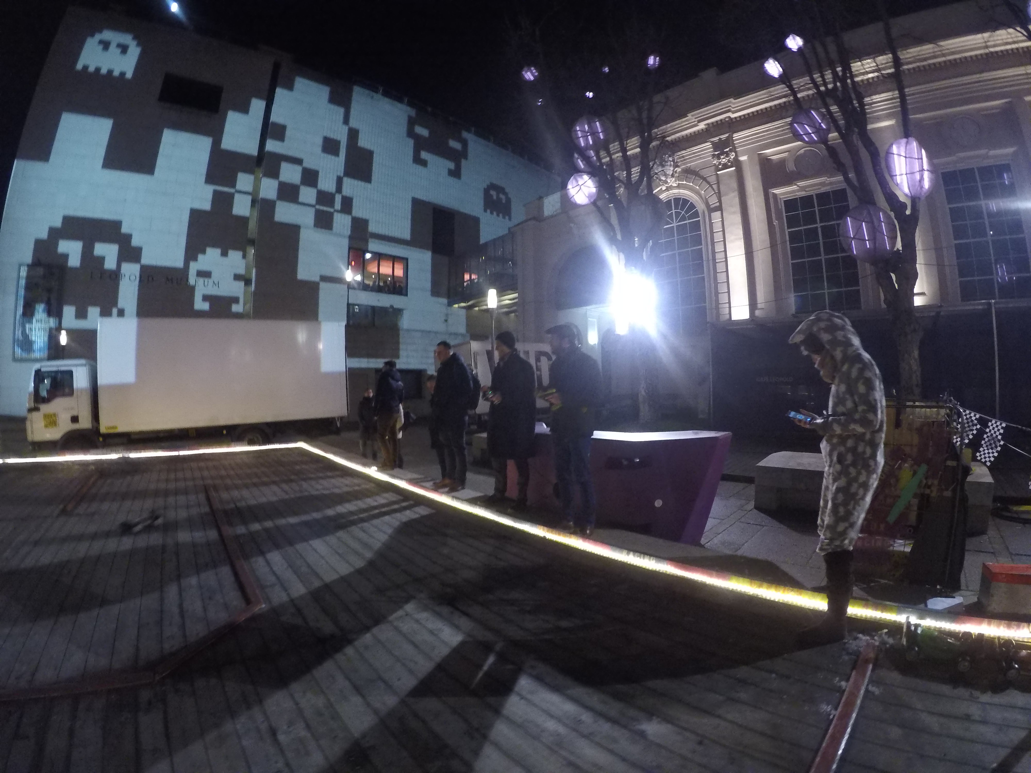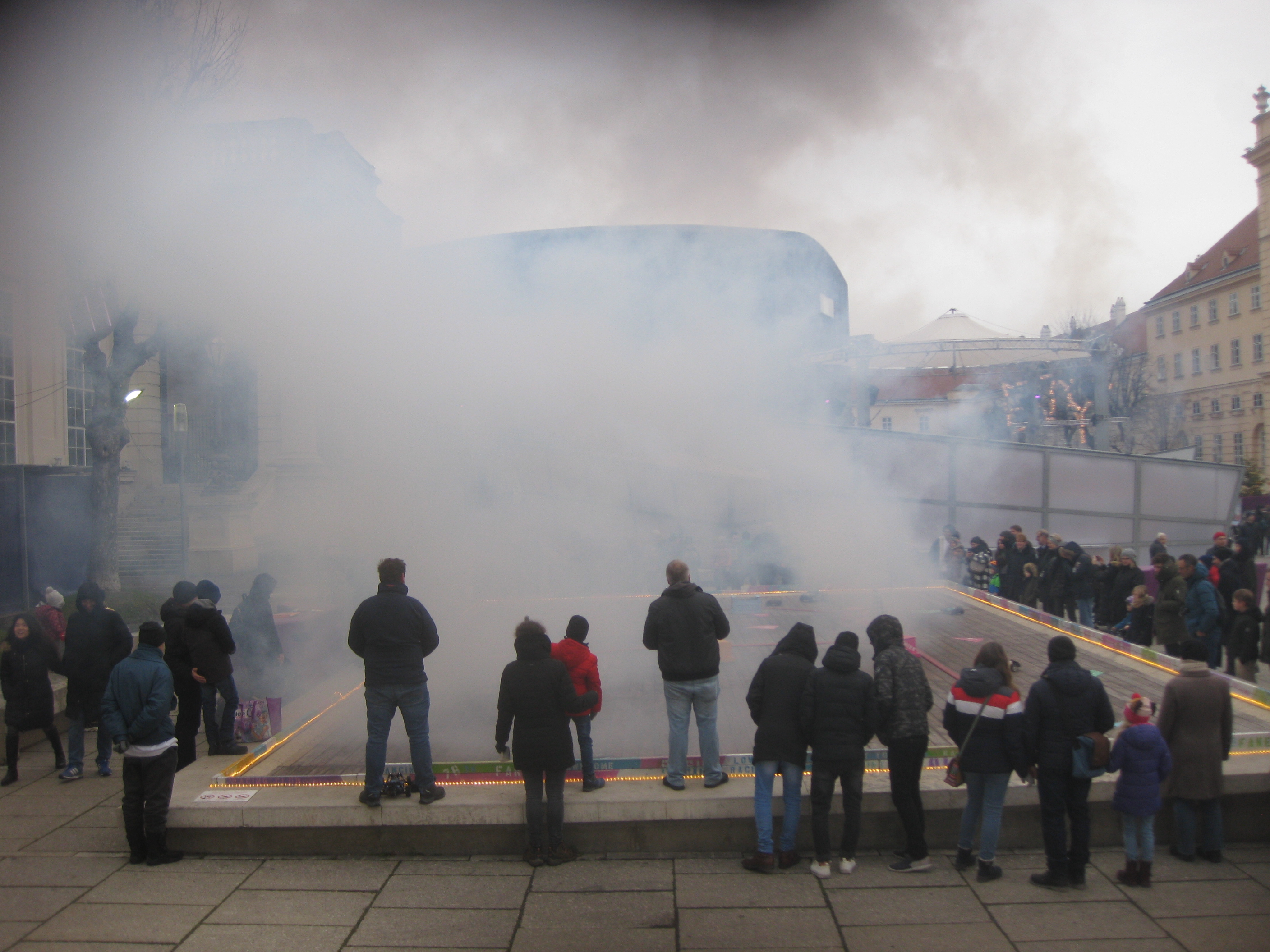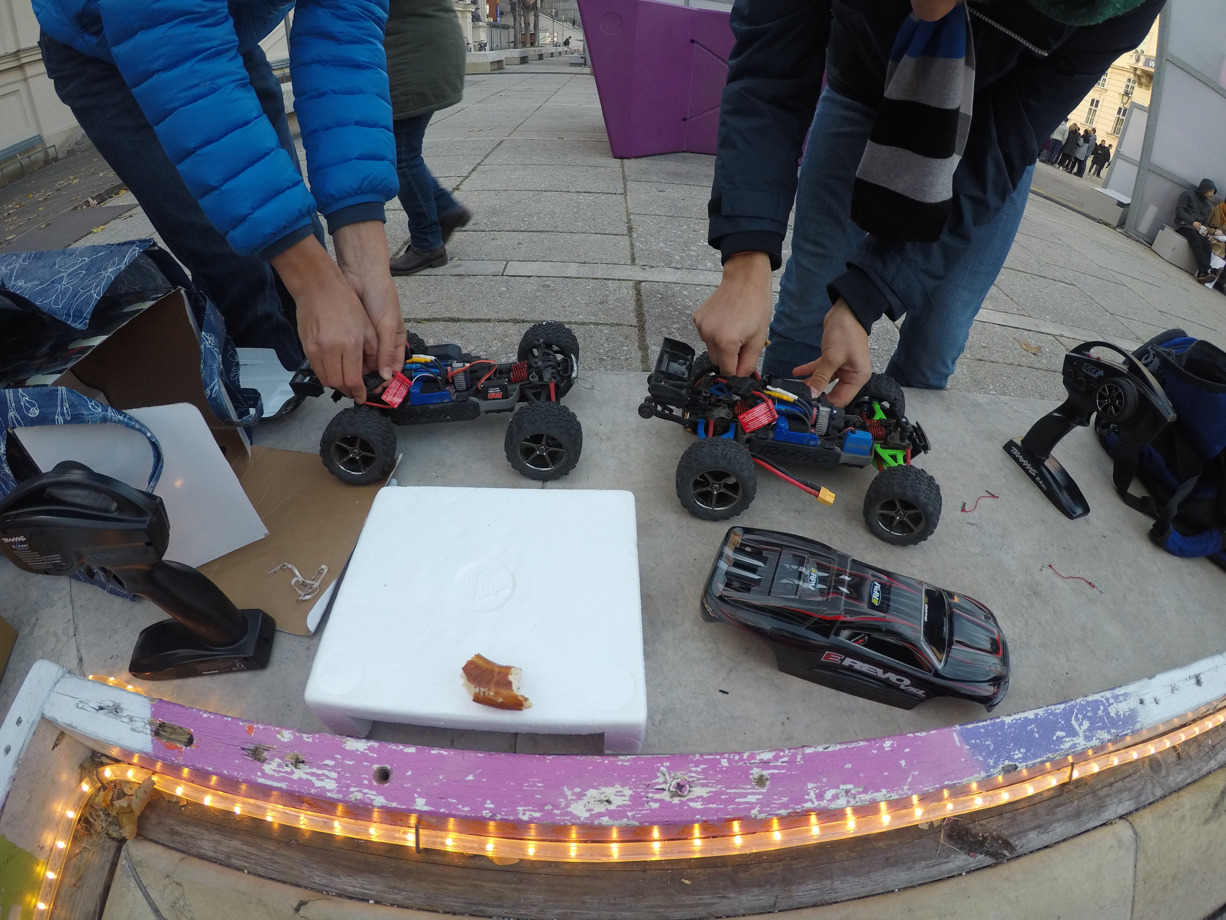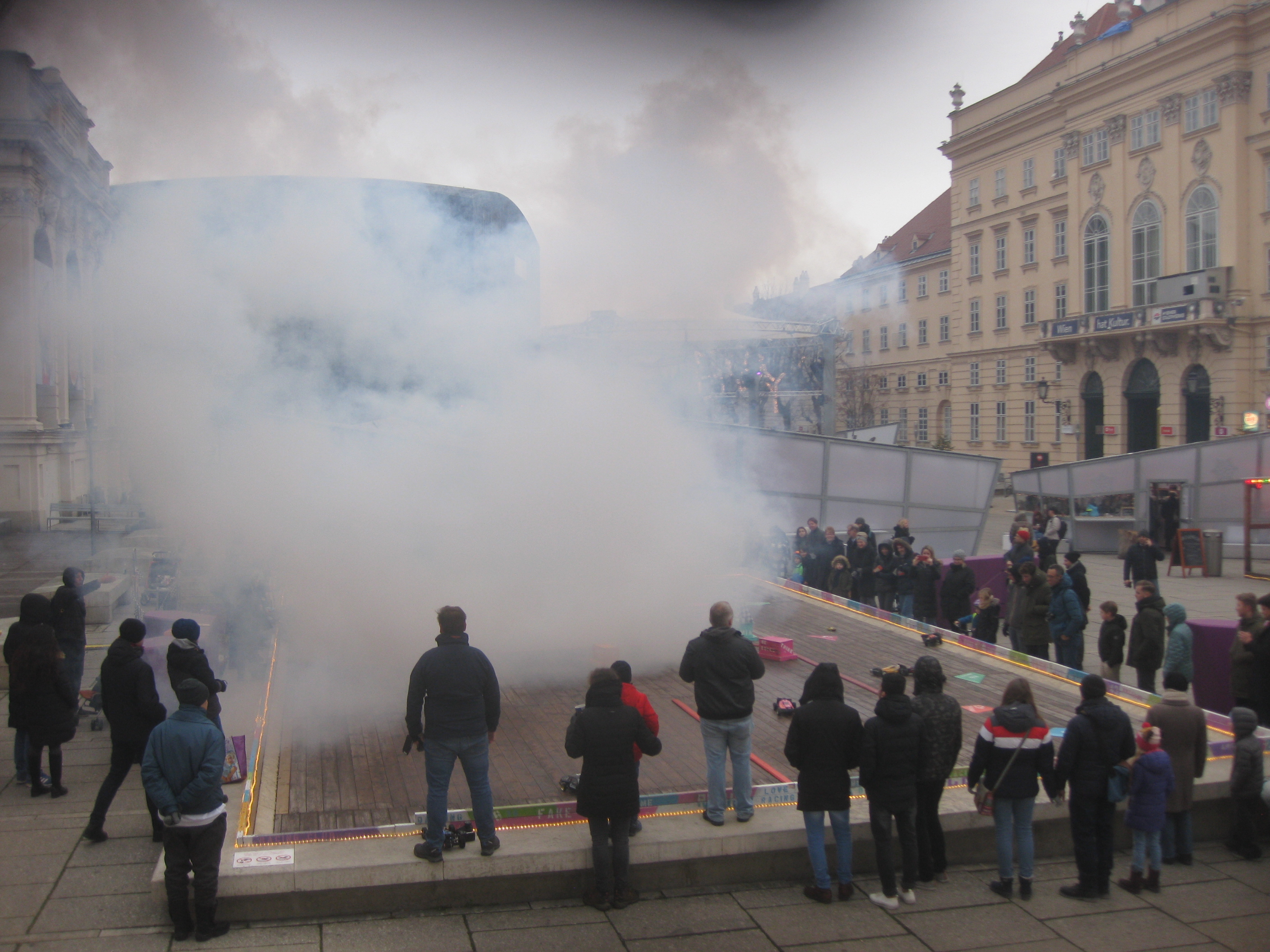 Since 2006, the light and installation artist Martin Markeli has turned the MQ water basin into an arena that visitors can explore with remote-controlled model cars. The Winter Race is a temporary installation by the artist that offers visitors the opportunity to “experience” the feeling of competition through a playful approach. The focus of the installation is the interplay between the “play objects” and the visitors, who together change the public space as part of the creative participation.