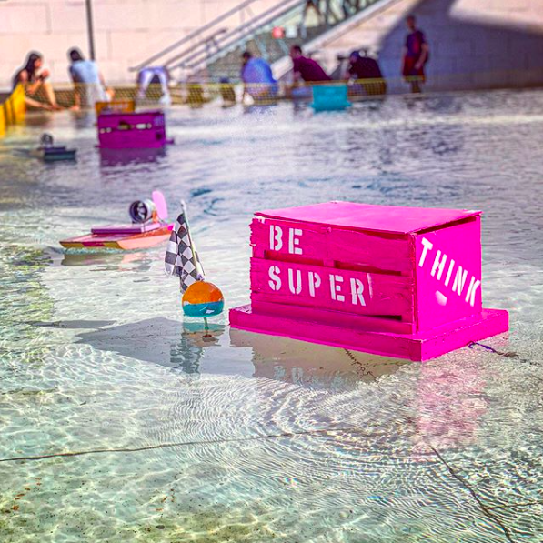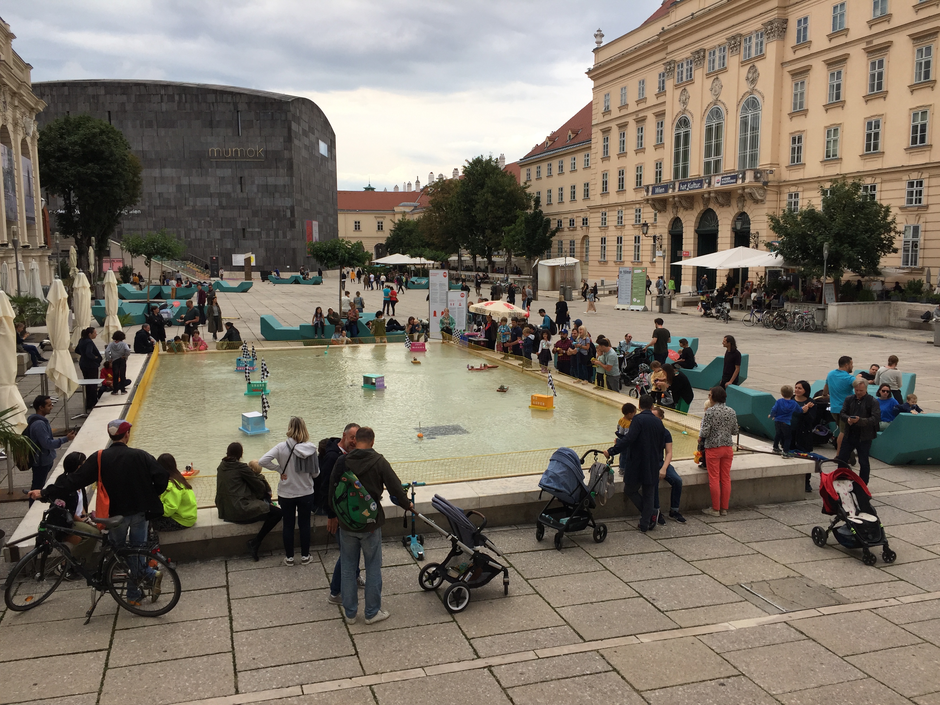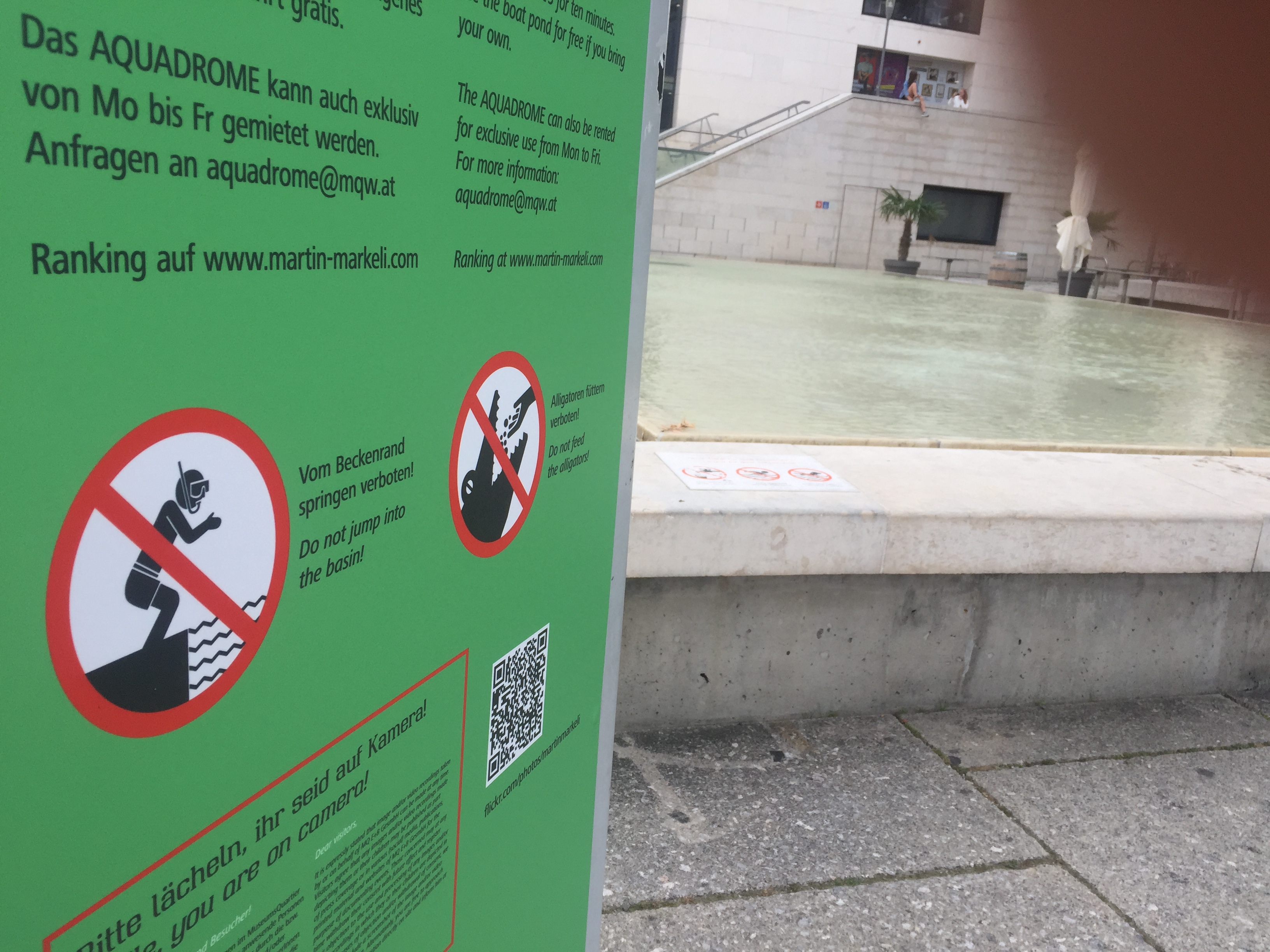 Auch dieses Jahr inszeniert der Licht- und Installationskünstler Martin Markeli das MQ Wasserbecken zu einer Inselwelt, die mit diversen Schwimmobjekten von den Besucher*innen erkundet werden kann. Das Aquadrome ist eine temporäre Installation, die den Besucher*innen die Gelegenheit bietet, durch das Navigieren und Koordinieren dieser Objekte ihre manuellen Fertigkeiten zu trainieren und unter Beweis zu stellen. Im Zentrum steht die Interaktion von selbstgebauten und mitgebrachten Schwimmobjekten (Booten), der Besucher*innen mit jenen des Künstlers.